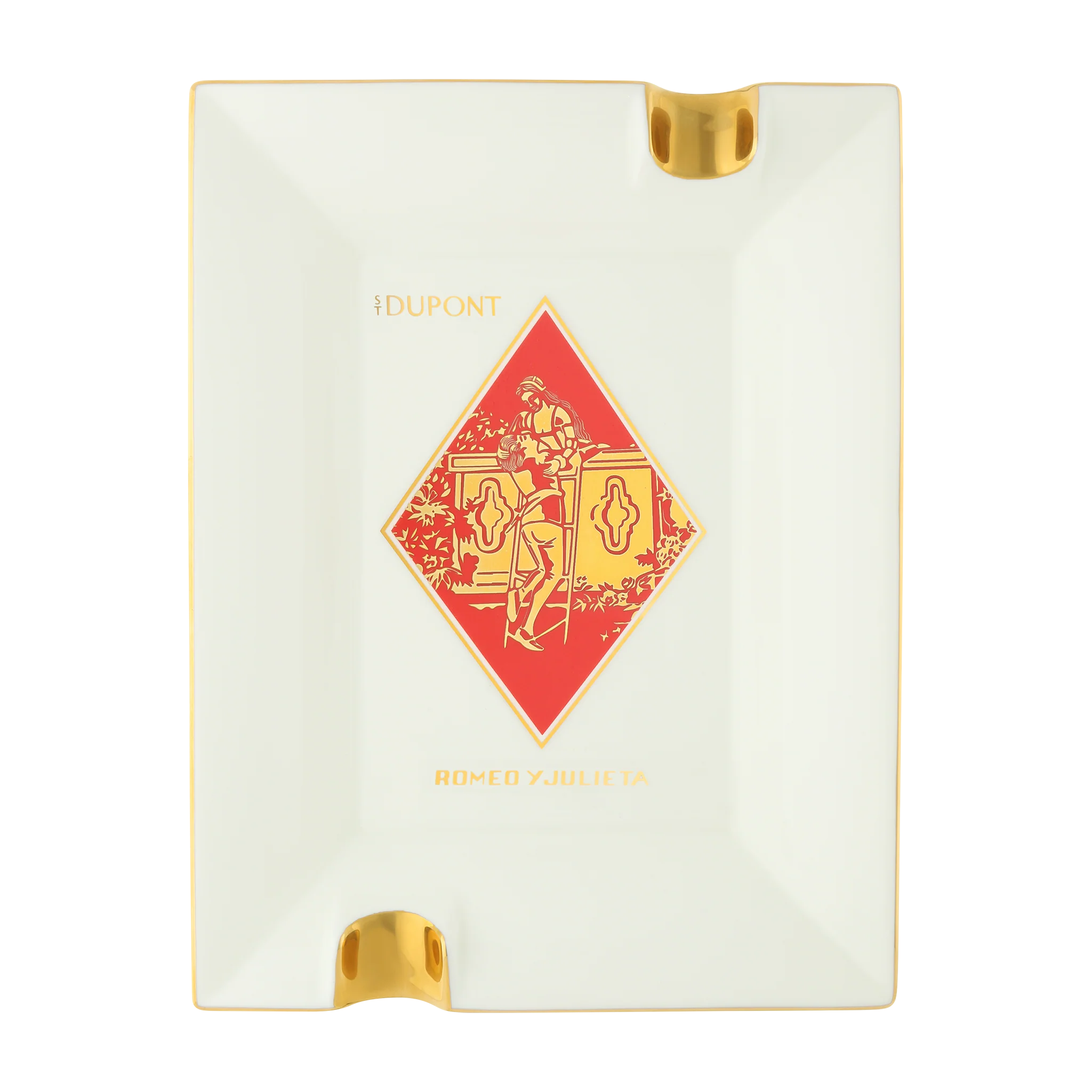 Created to honour the 150th anniversary of Romeo y Julieta, this exclusive S.T. Dupont collaboration celebrates ritual, craftsmanship, and timeless design. A pristine white porcelain ashtray with a high-gloss finish, elevated by hand-painted golden detailing along the grooves.